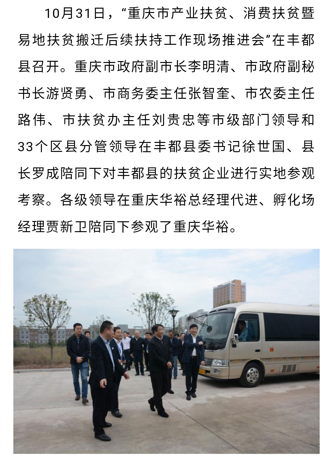 重慶市副市長李明清一行蒞臨重慶華裕參觀指導