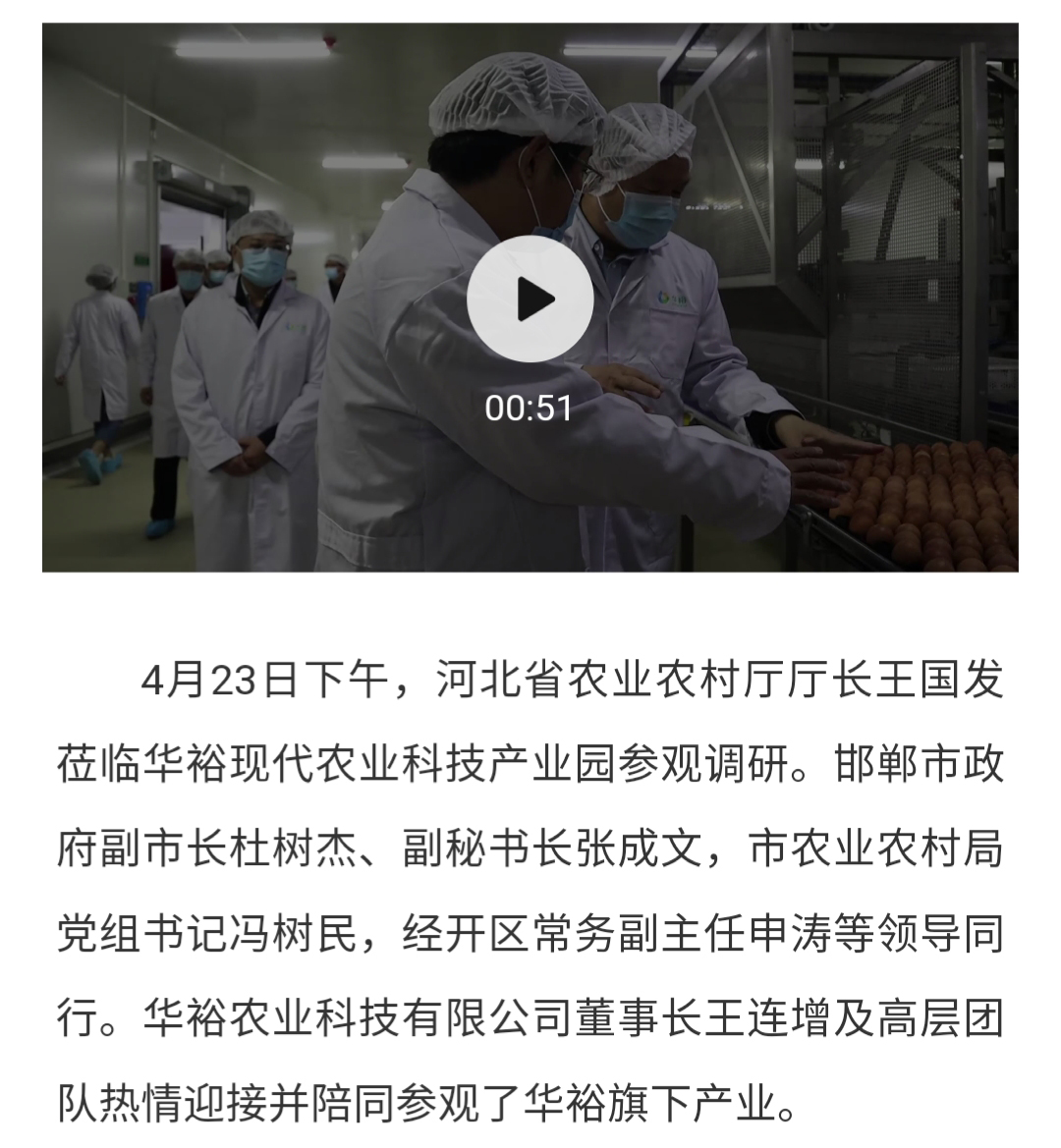 河北省農(nóng)業(yè)農(nóng)村廳廳長(zhǎng)王國(guó)發(fā)蒞臨華裕參觀調(diào)研