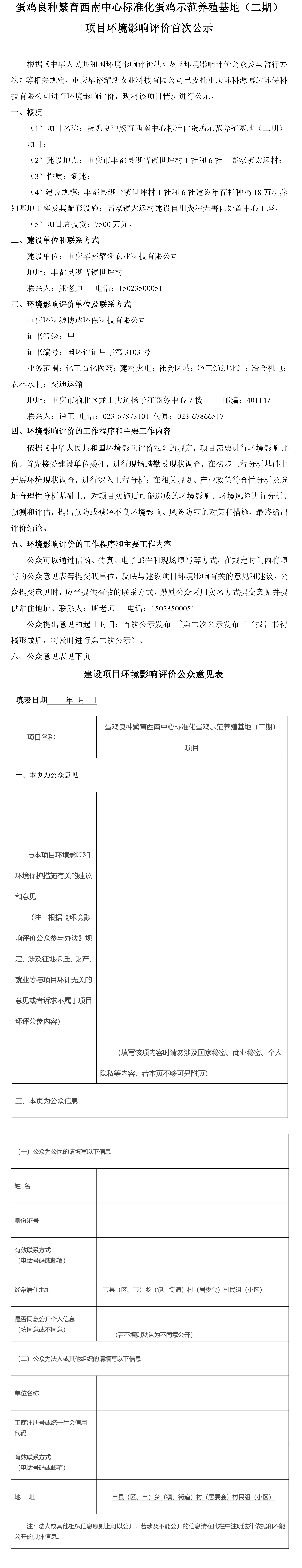 蛋雞良種繁育西南中心標準化蛋雞示范養殖基地(二期) 項目環境影響評價首次公示