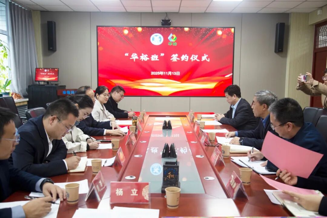 11月13日,華裕農業科技有限公司董事長王連增一行7人,專程奔赴河北農業大學,與動物科技學院黨委書記楊彥華等學院領導齊聚一堂,共同推進第六期“華裕班”建設,為深化產教融合、培養農業領域高素質人才再添新動力。