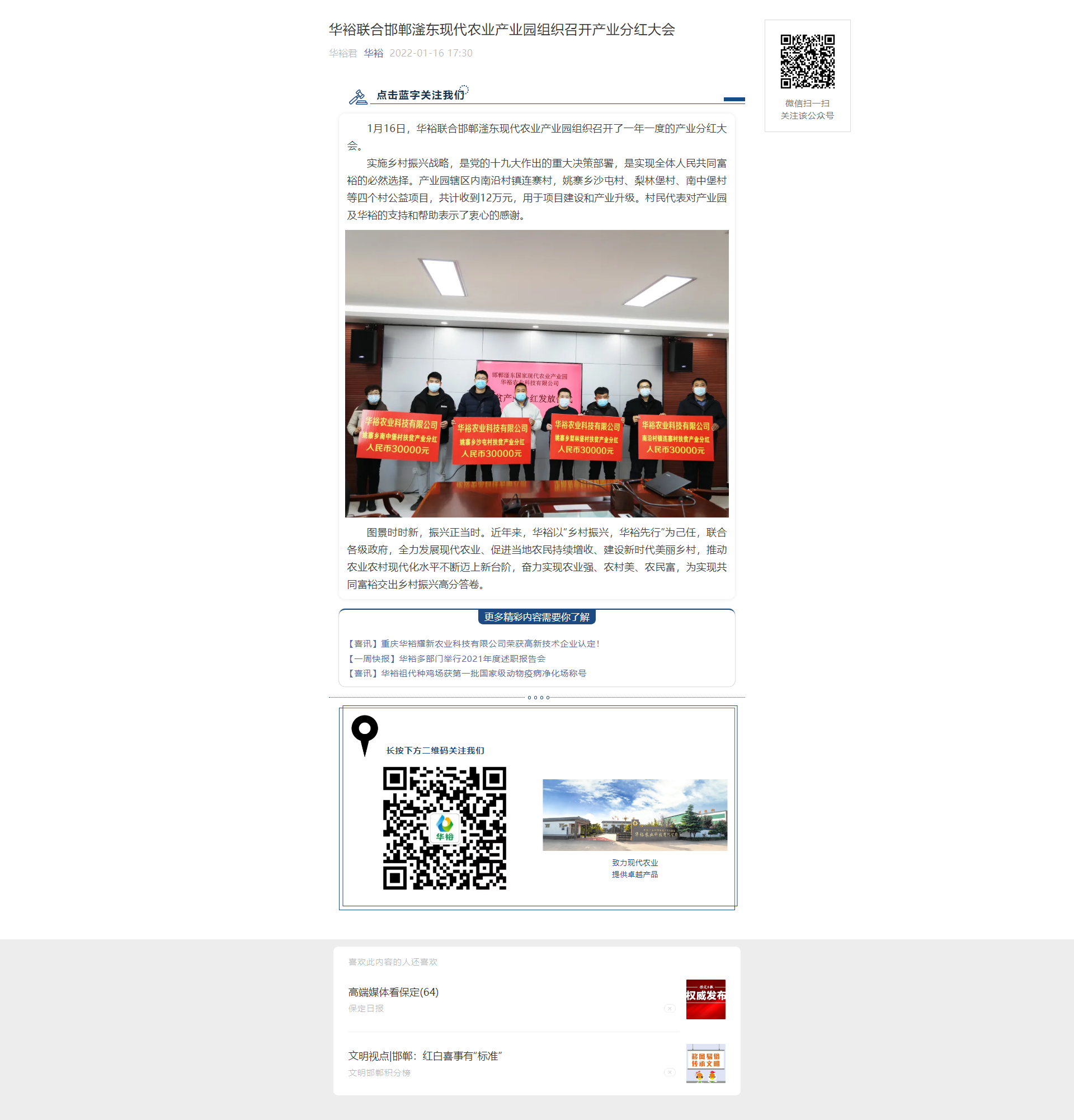 華裕聯合邯鄲滏東現代農業產業園組織召開產業分紅大會